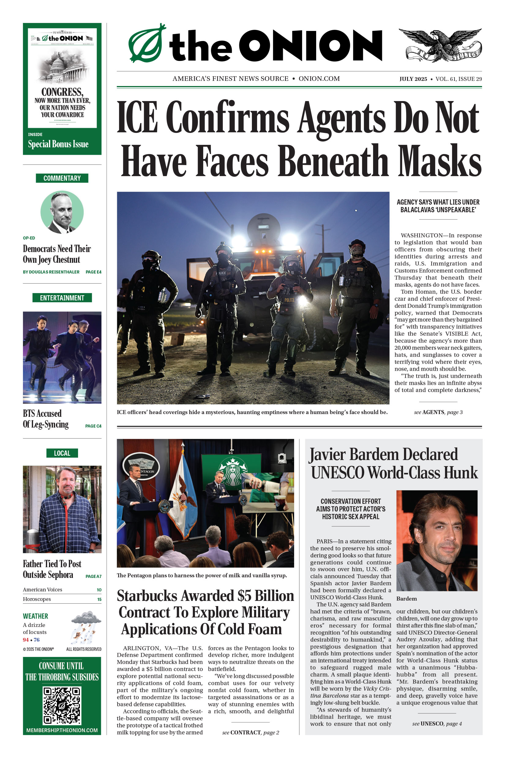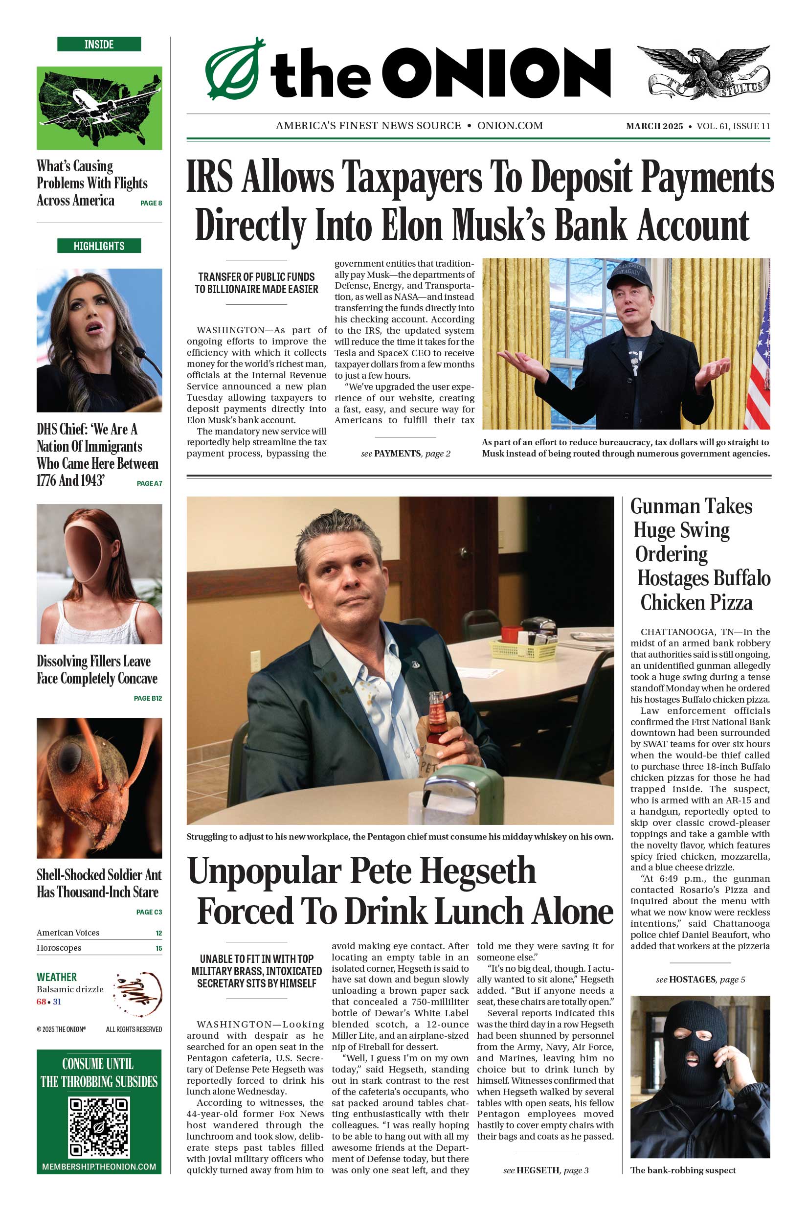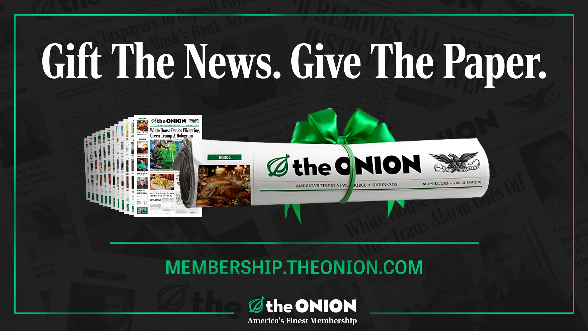 Journey through 268 years of highly acclaimed, universally revered reporting. The Onion‘s archives comprise the most powerful and influential news coverage in human history.